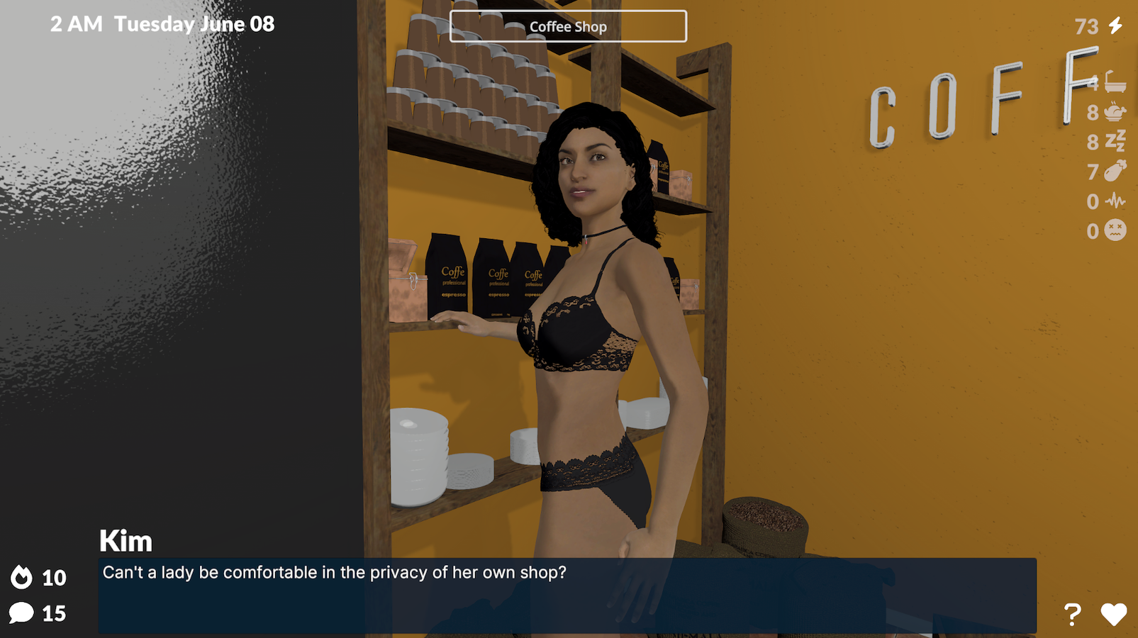 The Sex Ed Demo gives you a small taste of what’s in the full Patreon version. It ends after 7 in-game days. If you like it and want the FULL VERSION with unlimited play time, check it out on Patreon!